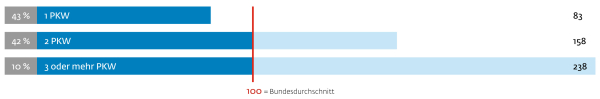 Von den Befragten besitzen 95 % mindestens ein Auto, etwas über die Hälfte sogar zwei oder mehr. Damit sind sie markant überdurchschnittlich.