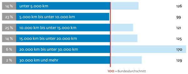 Die Kilometerleistung im Jahr liegt bei den meisten bei bis zu 20.000 km, trotzdem bezeichnet sich jeder 5. Immobilienbesitzer selbst als ambitionierter Vielfahrer.