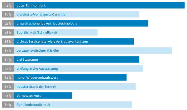 In allen genannten Auswahlkriterien liegt die Zielgruppe über dem Bundesdurchschnitt, und zwar von Index 104 (guter Fahrkomfort) bis Index 116 (Familienfreundlichkeit).
