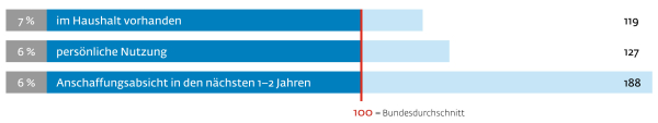 Der Trend zum E-Bike / Pedelec ist eindeutig erkennbar. Hier liegen die Immobilienbesitzer in Bayern beträchtlich über dem Bundesdurchschnitt: