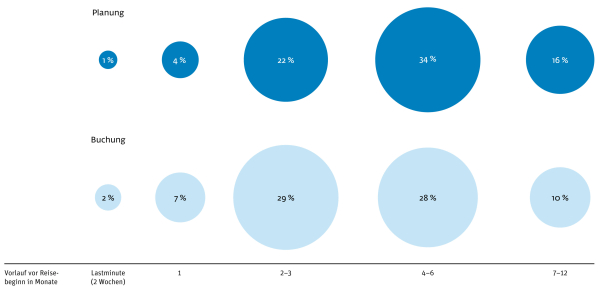 Die meisten Immobilienbesitzer planen und buchen ihren Urlaub zwei bis sechs Monate im Voraus – damit liegen sie über dem Bundesdurchschnitt. Verteilung in %: