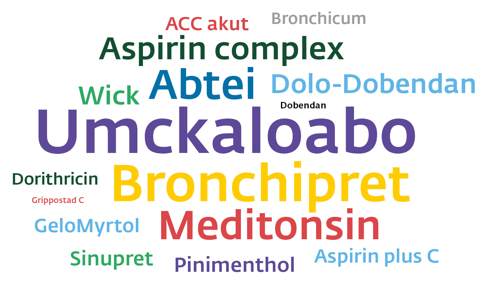 Verwendete Marken im Bereich Erkältung, Husten und Halsschmerzen: